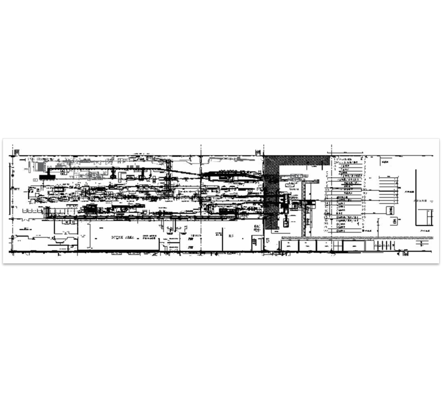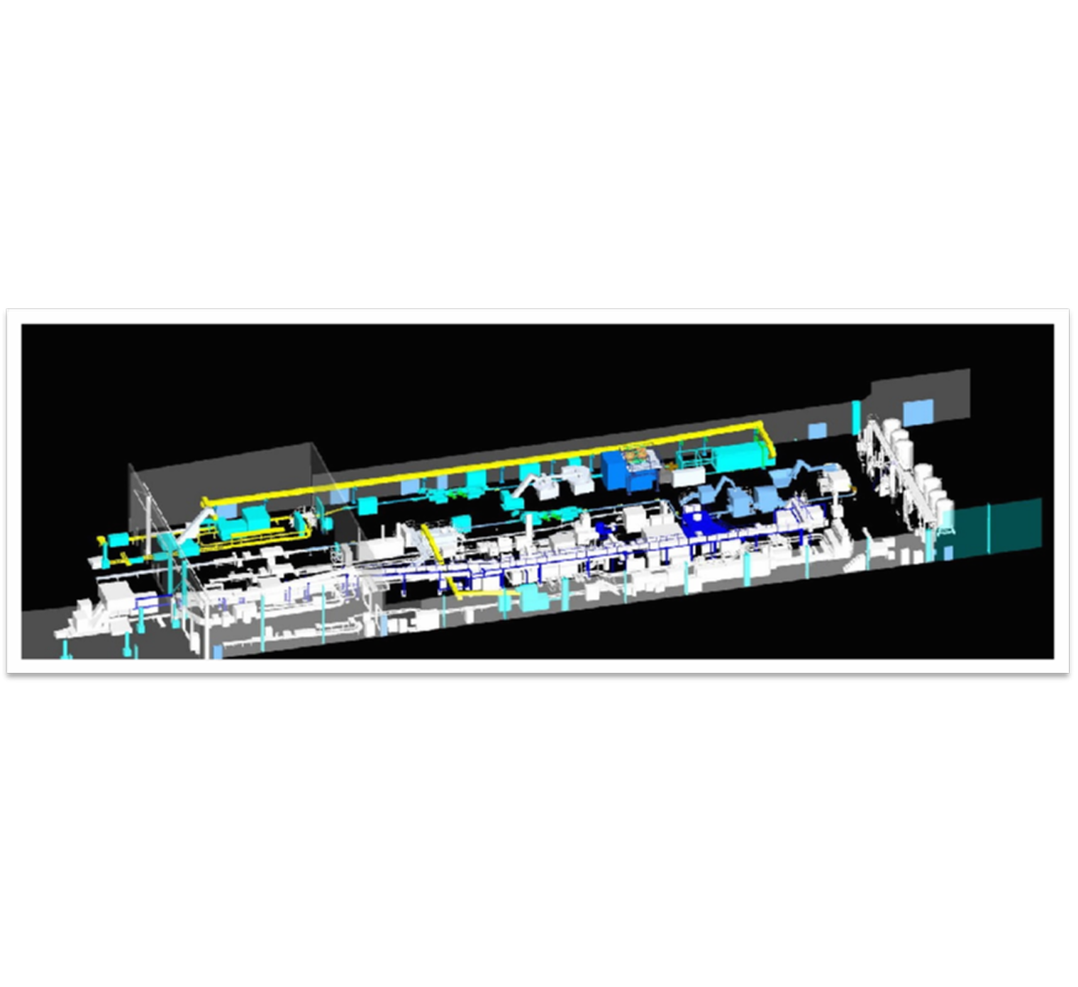 前期の計画設計から施工図面設計に至るまで、一連のフルサービスを提供しております。具体的には、既存生産工場の設備配置の再確認、設備および施設のレイアウト設計、生産における人流・物流計画、公的補助設備の配置、包装資材の倉庫連携計画、設備間のコンベア設計、高所コンベア設計、生産ラインの工法に基づく物料搬送設計、生産ラインに付随する工業用水および空気システム設計などを含みます。また、3Dスキャンおよびモデリングサービスもご提供可能です。